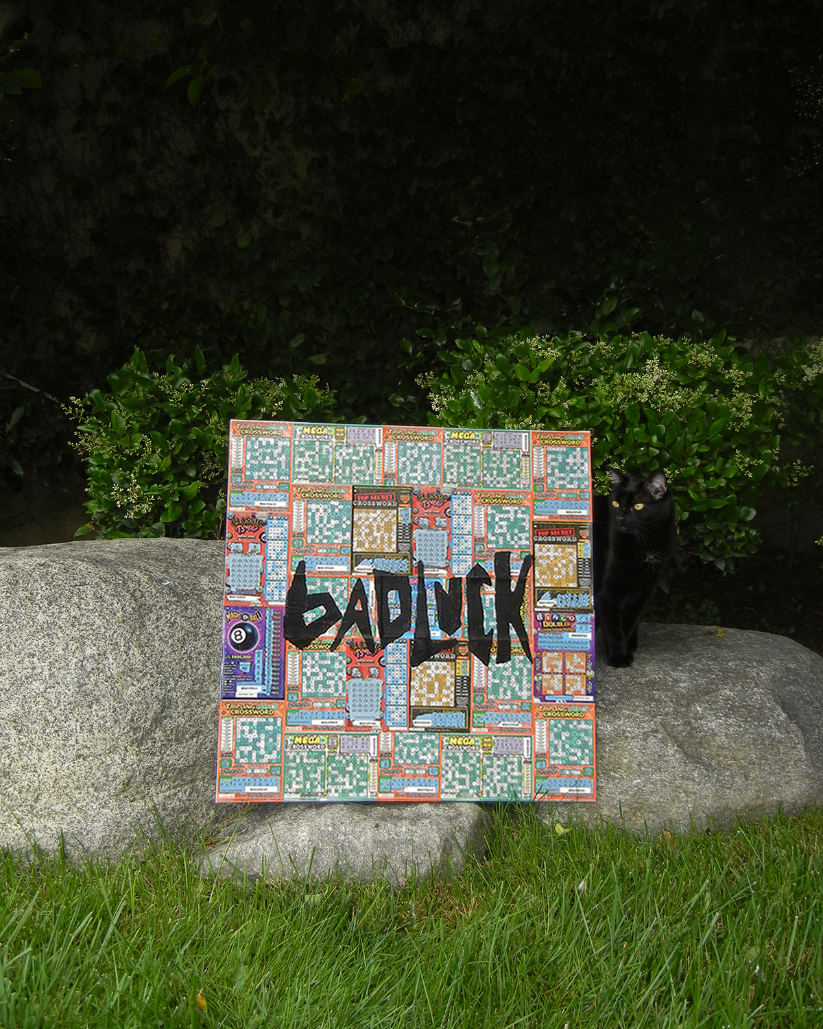 multimedia artwork. losing scratchers and acrylic paint on canvas. 24 in. x 24 in.