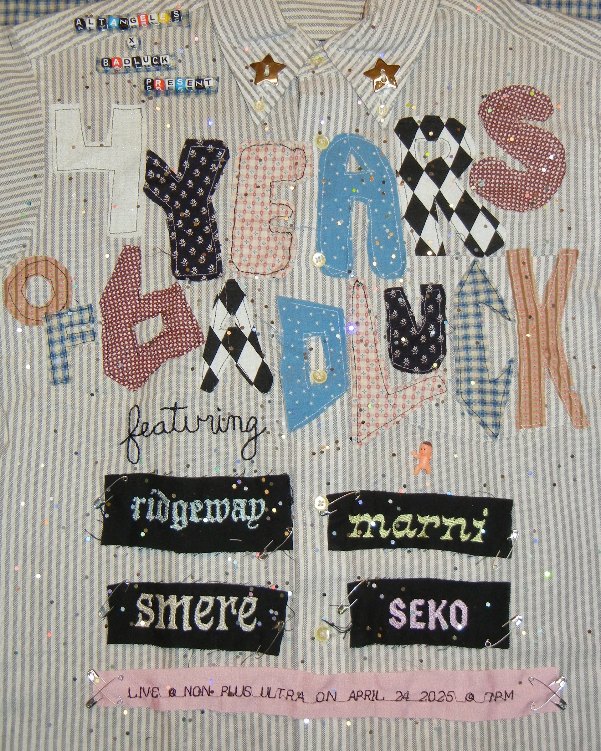handmade flyer for my brand BAD LUCK's 4th birthday show i organized in april 2025.