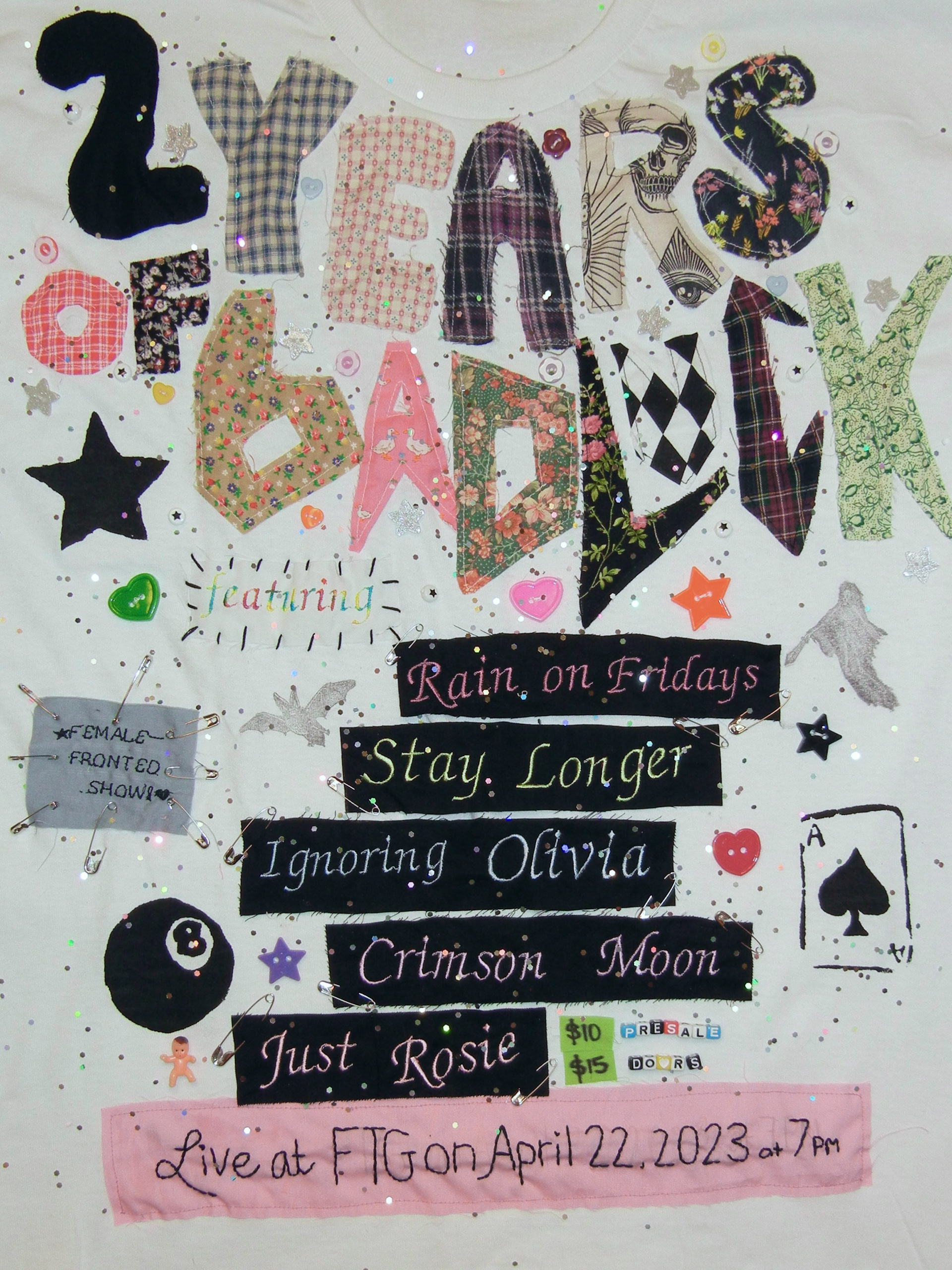 handmade flyer for my brand BAD LUCK's 2nd birthday show i organized in april 2023.